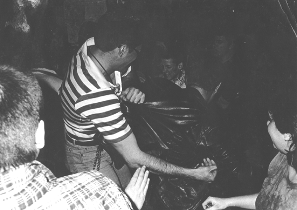 otto helps someone to the door! *laugh* In the background is jamie lewis .. looking like he is taking a shit. On the far right, barely in the picture is Lisa Pierson