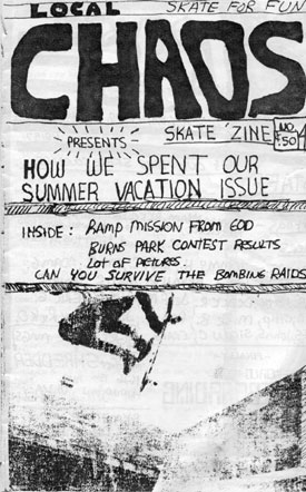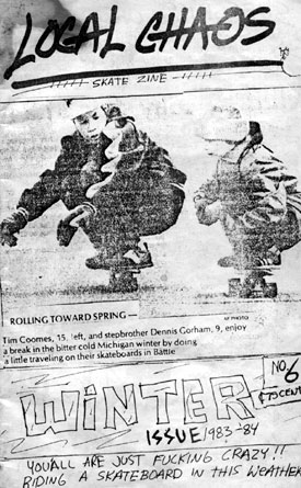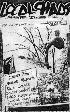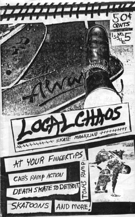 Ok, so here are the covers for all the issues of "Local CHAOS" with brief descriptions of what was inside. Now, Local CHAOS was not the only 'zine at that time in the Ann Arbor area. "Isolated Rat Hearts", "RCS Boredom", "A2 Skate News" and "A2 Review" were examples of what was being done. In time we will bring the covers and artwork of these other 'zines.