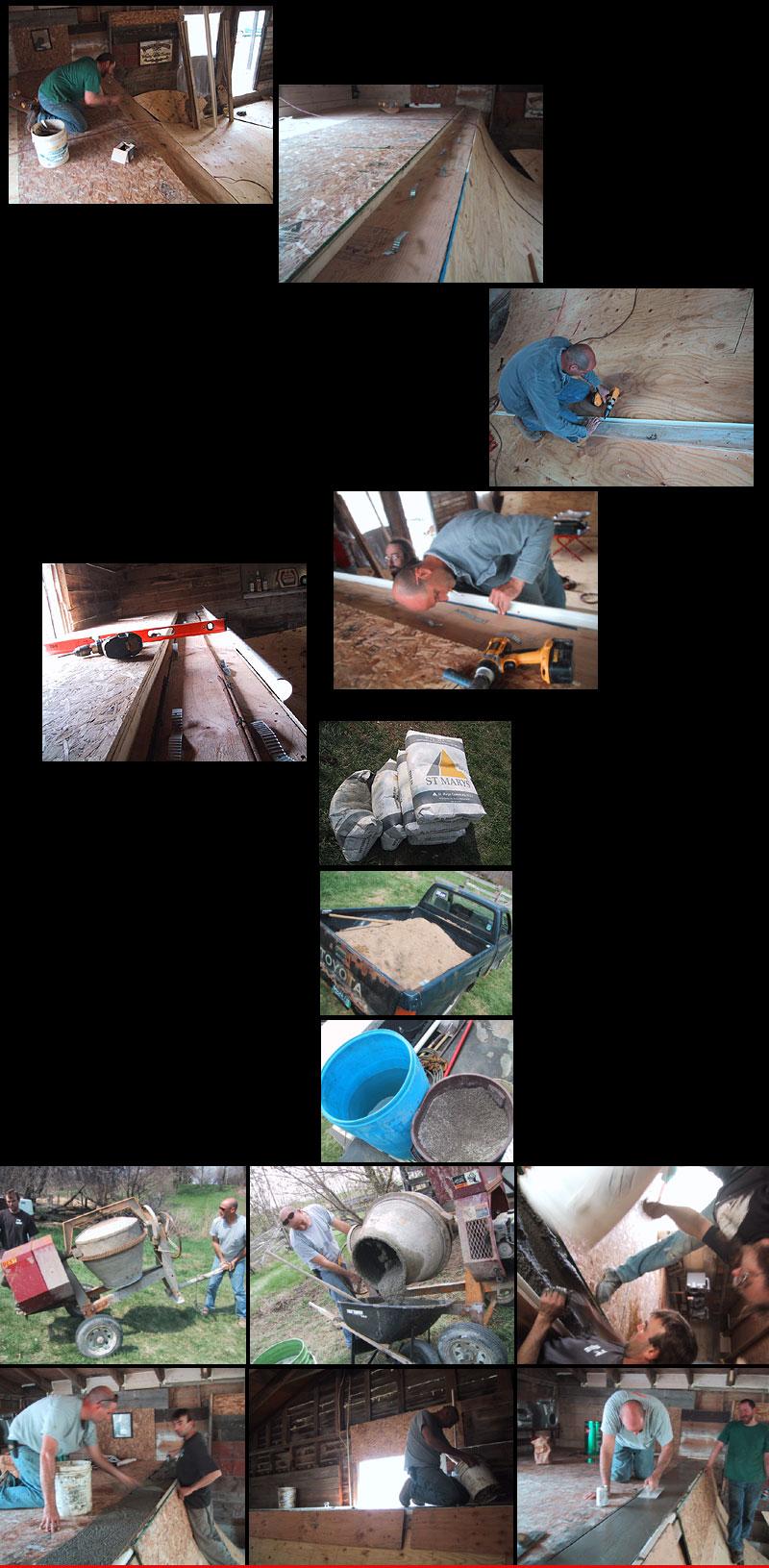 Chris Day is an old friend and professional cement guy. After describing what we wanted to do he was all .. "Thats easy to do..all we need is .. ", and he pretty much describes the process on how to make coping off the top of his head. He used a variation of aprocess that he uses to make concrete steps.