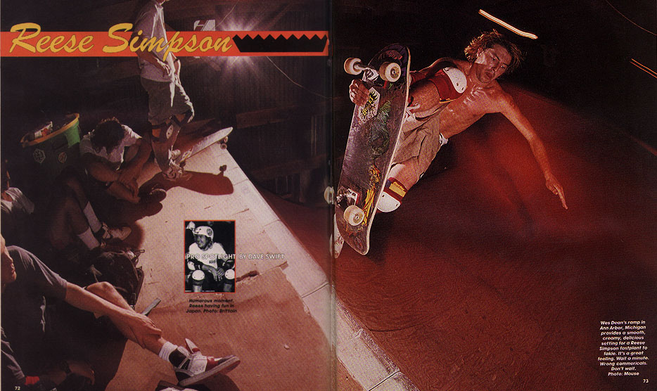 There were many people who supported the mag and skated our ramps. Northville Crew, the Taylor Boys (Al, Jeff and others), Toledo Posse(Rick, Terry, Scott, Onion, Dana), Flint Punks/Freek Bros (Hey Frank!? where the FUCK are you these days?), Delphos Crew (Ed, Todd), Endless Summer Guys and countless other locals, non-locals, and special guests. Pro skaters Monty Nolder, Reese Simpson, Jimmy Murphy and Ben Schroeder took time out from a busy tour schedule to rip with us at my ramp in the barn on Joy Rd. JFA (Jodie Foster's Army) skated with us every time they came to town. You guys were always cool to me.---Wes - 2003