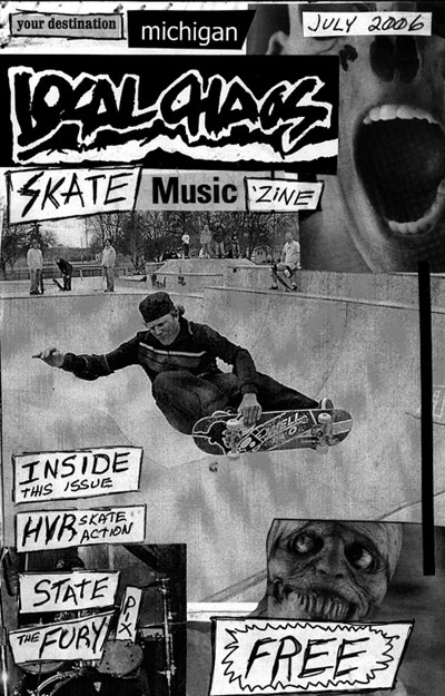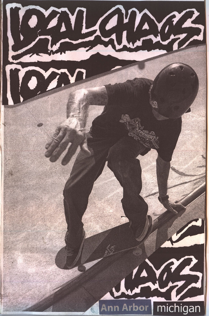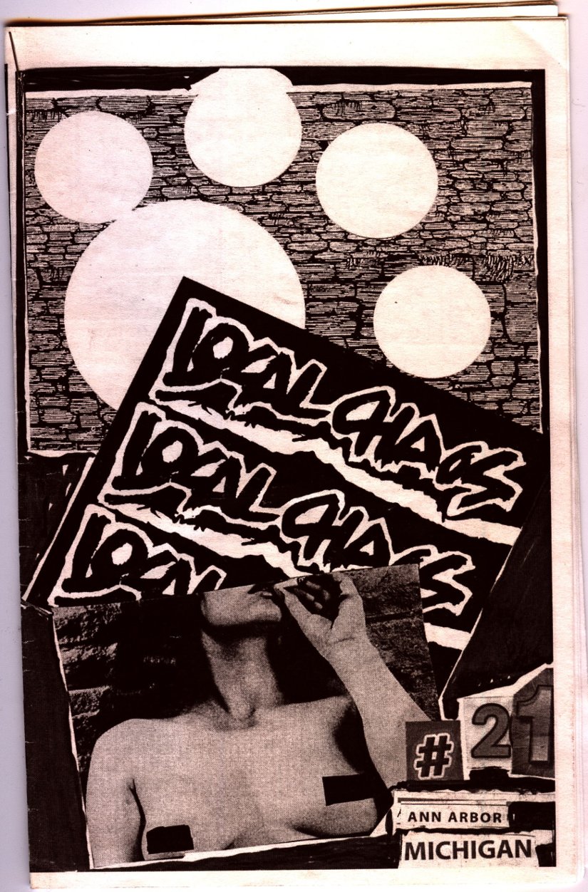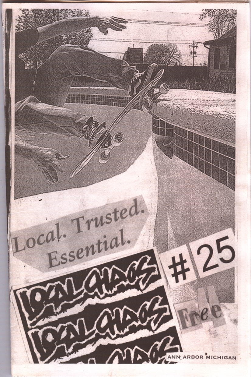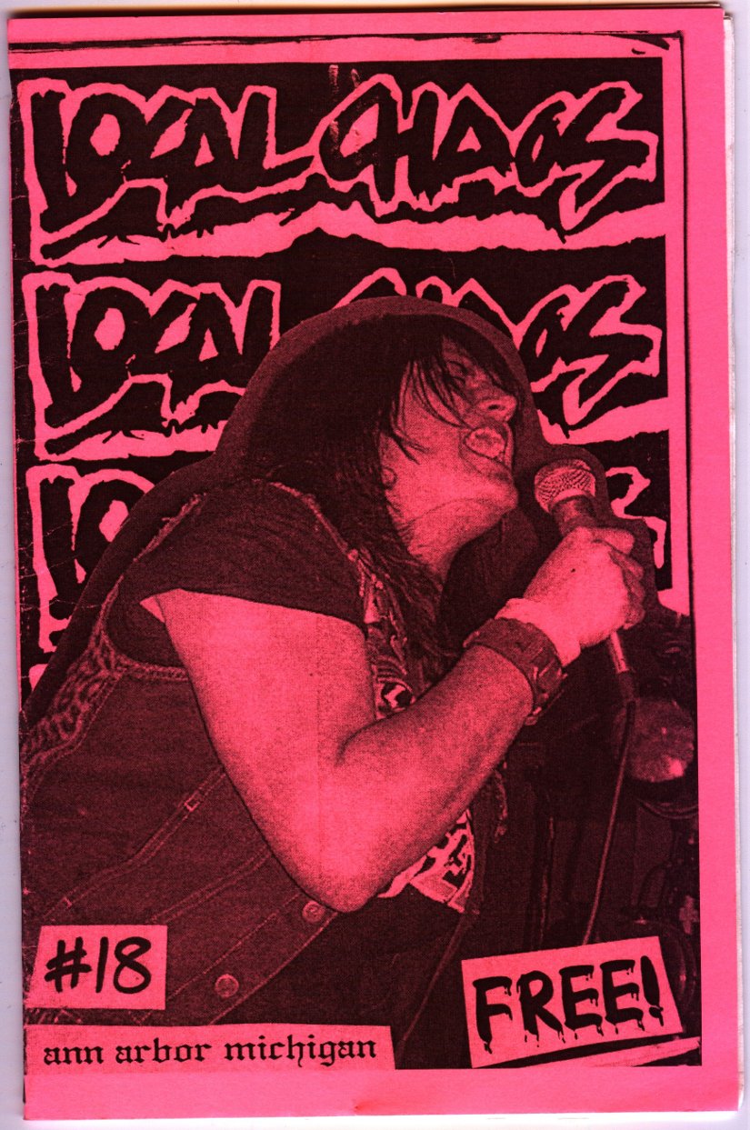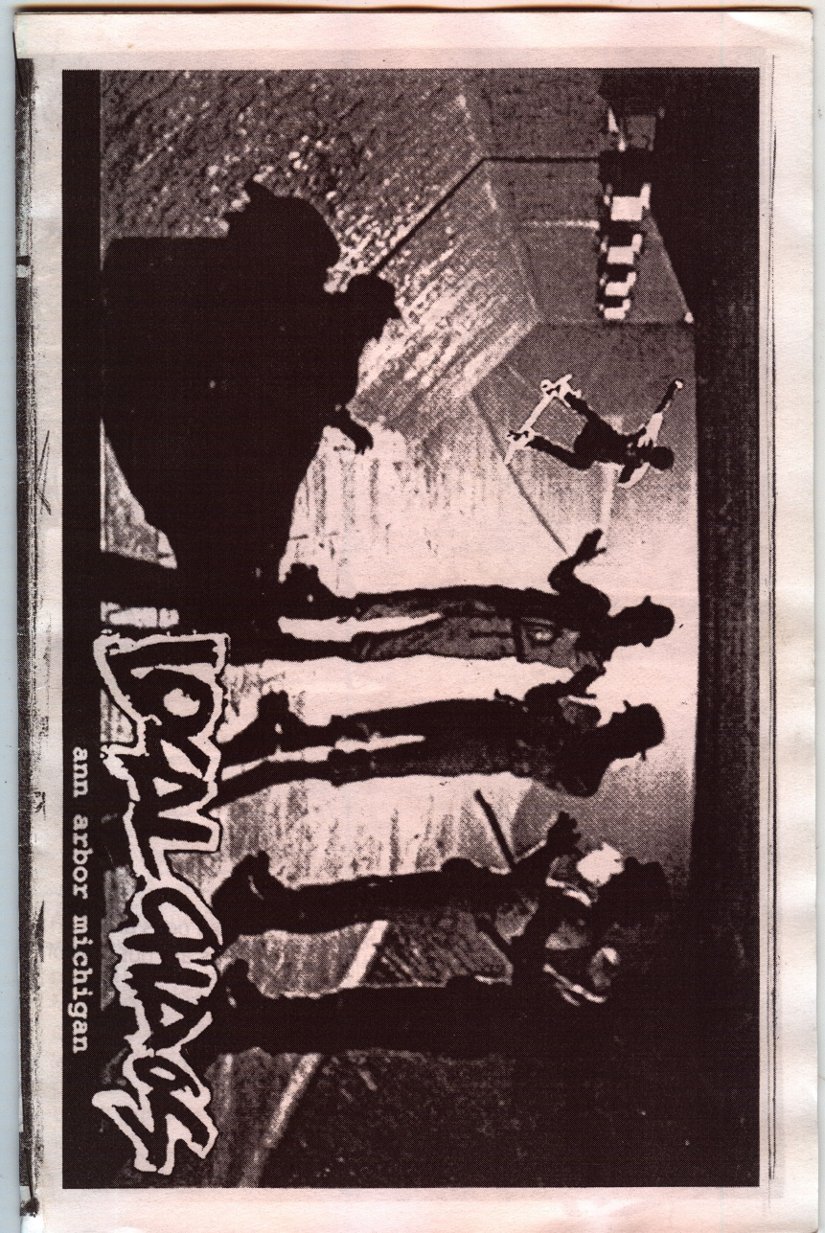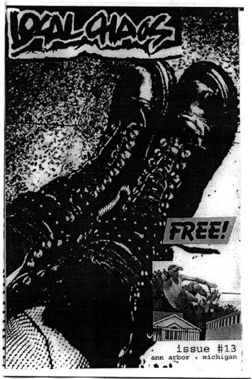 LocalCHAOS, the music zine, was trying to be a reflection of the bands we listened to, hungout with and to report on our local underground music scene. This was all made possible with the help of kids like Stephanie Watches (record reviews), Jamie Lewis, Alice Royston ("A2 Review" editor who got us some free printing), Rob Dahl (photos), Art Tendler (gave us one place to hangout), Lori Bizer (Schoolkids Records, "All Out Attack" on WCBN), Sean Carroll and Jerry Bush (JB) from "Isolated RAT Hearts" for their support. Thanks to all the skins, skaters, punks, mods, bored rich kids, homeless kids, hooligans, runaways, artists, poets and band members who gave us shit for the 'zine.