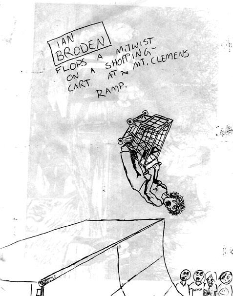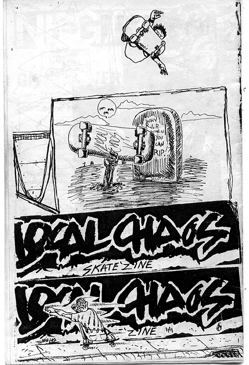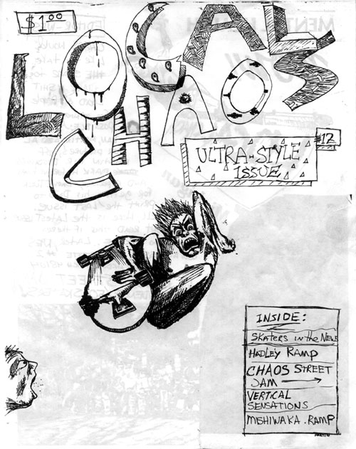 This would be the first of two covers Jeff did for "local CHAOS". This is from issue #3. It pretty much reflected the attitude of the day. Ann Arbor cops hated us skaters and would hassle us all the time.