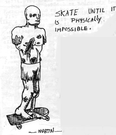 jeff martin. during the 80's, besides being a RIPPIN' skater and screamer did lots of artwork/drawings for "local CHAOS". He also did his own 'zine "skateboard action" and contributed a drawing that ended up being the logo for "Statement Records".