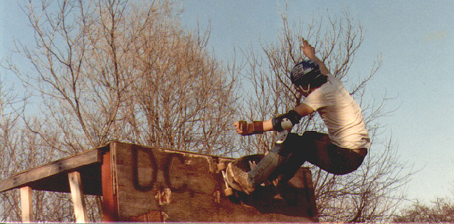 "Fulmer Ramp" was on the westside of town and located at Derrick and Davy Robbins grandparent's house. Those guys along with Dale Calvert (RIP), Luther, Steve "Casper" and some others had one of the first half pipes in the area. It was 8' wide with maybe 6' transitions and no flat space. Tommy and I talked them into letting us cut it in half and add 4' of flat space between the transitions. This was pretty easy to do since the ramp wasn't cemented down in the ground. We also built decks on it and at one time a small vert extention with pool coping. Those guys were pretty receptive to whatever we wanted to do with the ramp. I think they were all stoked seeing some "new blood" take an interest.