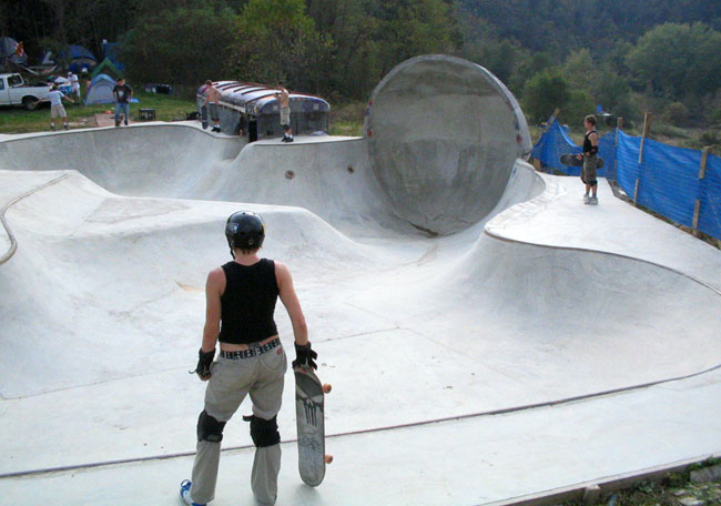 Now people were starting to get fired up and it was time to skate! The Punisher, dong bowl, 3/4 pipe and the big vert ramp were all seeing some session hungry skaters ripping the flow they know. I even laid down a couple of lines on the vert ramp that got me a couple of whoops and cheers. ;-) the dong bowl had a huge session going on. I wasn't able to get any good pictures but I did get some footage of skaters runs.